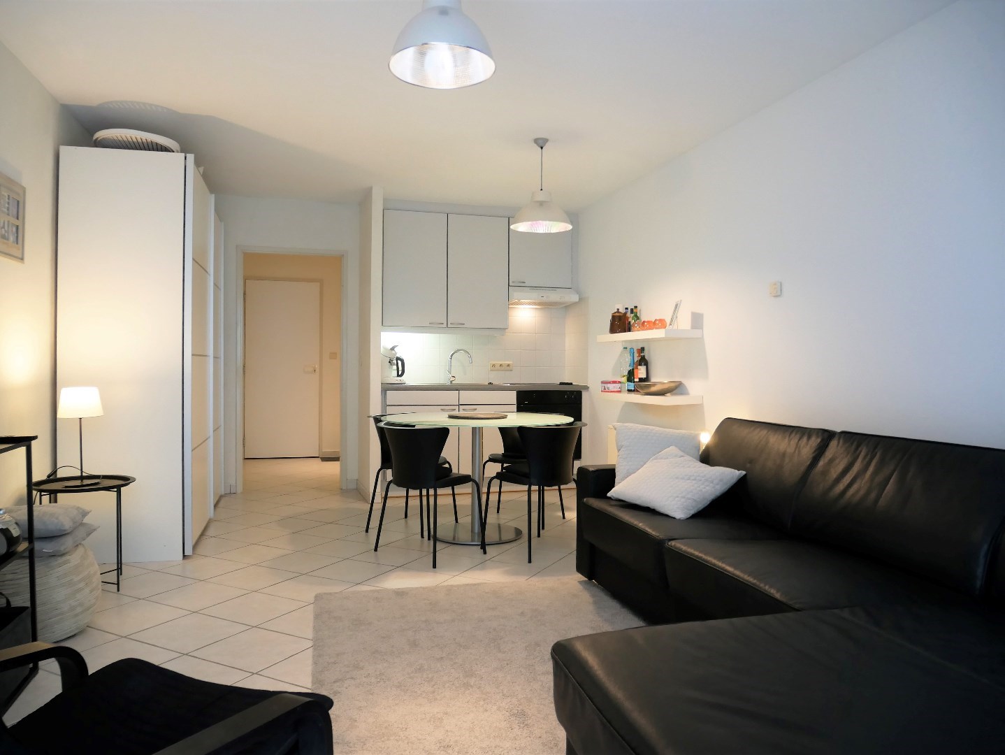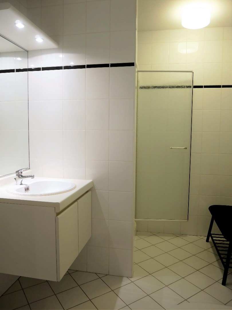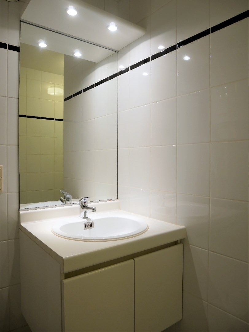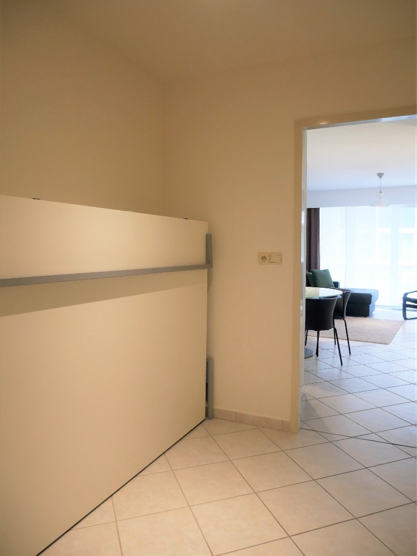 Studio spacieux au premier étage (ascenseur à disposition) de la résidence Strandhuis à deux pas de la plage. Il se compose d'un hall d'entrée avec coin chambre, d'un salon spacieux avec terrasse annexe, d'une cuisine équipée, d'une salle de bains avec lavabo, douche, connexion pour machine à laver et toilettes. Une place de parking souterrain est incluse dans le prix.