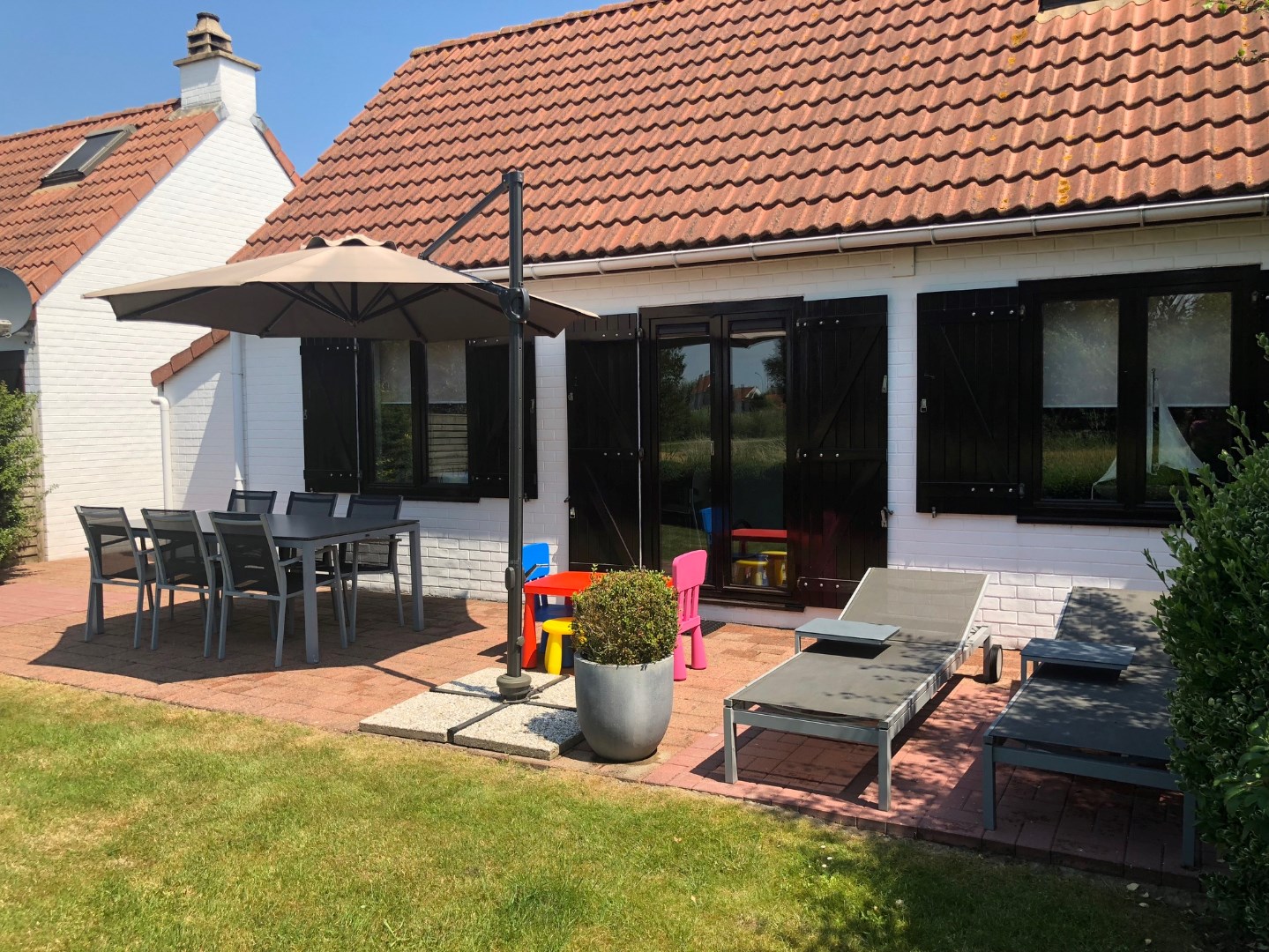 Instapklaar vissershuis op de mooiste locatie van het recreatiedomein Village Park in De Haan. Deze vakantiewoning bestaat uit inkom met toilet, badkamer met lavabo en douche, 3 slaapkamers, geïnstalleerde keuken en een gezellig living met rechtstreekse toegang tot het terras en de aangelegde,zongerichte tuin vanwaar men kan genieten van het open zicht. De woning wordt gemeubeld aangeboden. Private parkeerplaats is inbegrepen in de prijs. Uniek aanbod ! Dit pand is onderhevig aan de renovatieverplichting die door de Vlaamse overheid wordt opgelegd voor residentiële gebouwen.
